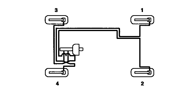4. Repeat the procedure for each wheel in the sequence shown below until air bubbles no longer appear in the fluid.
