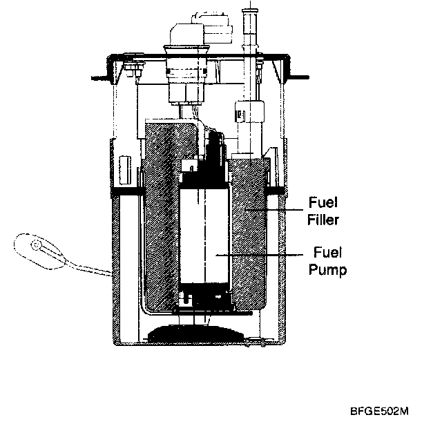 The fuel filter is a part of the fuel pump module. Access is available under the rear passenger seat through the service hole.