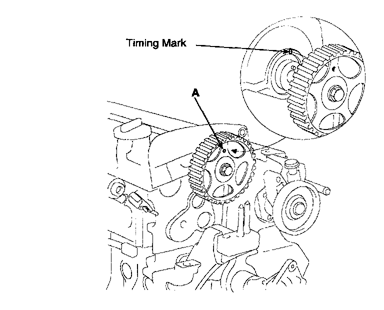 4. Align the timing marks of the camshaft sprocket (A) and crankshaft sprocket(B) with the No. 1 piston placed at top dead center and its compression stroke.