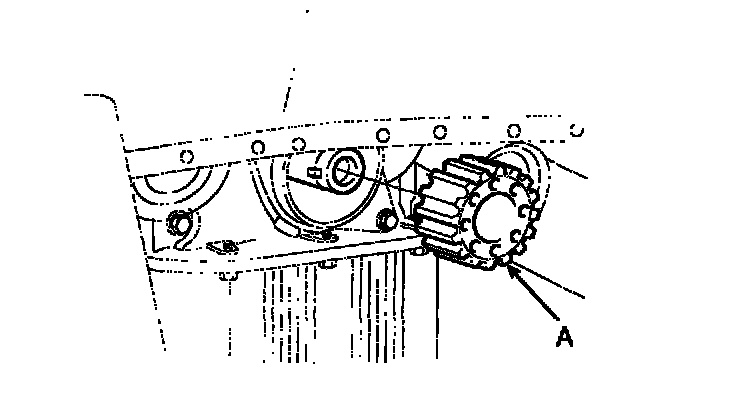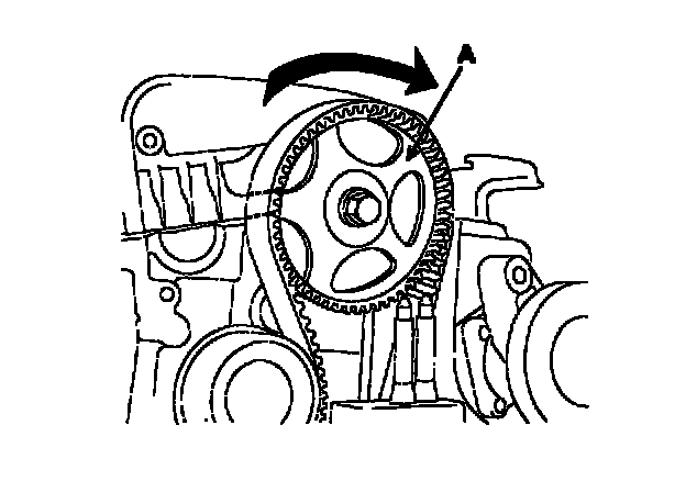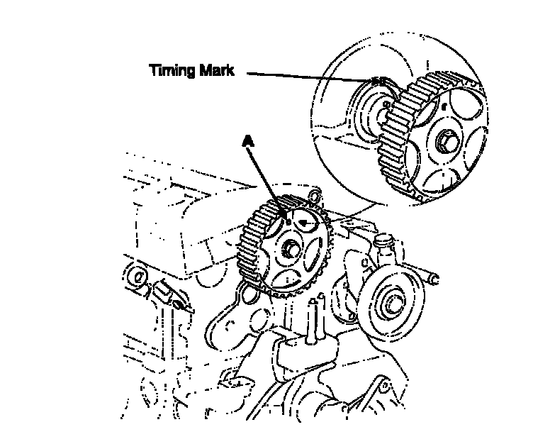 1) Rotate the crankshaft clockwise (view from front) through angle equivalent to two teeth (18°) of camshaft sprocket(A).