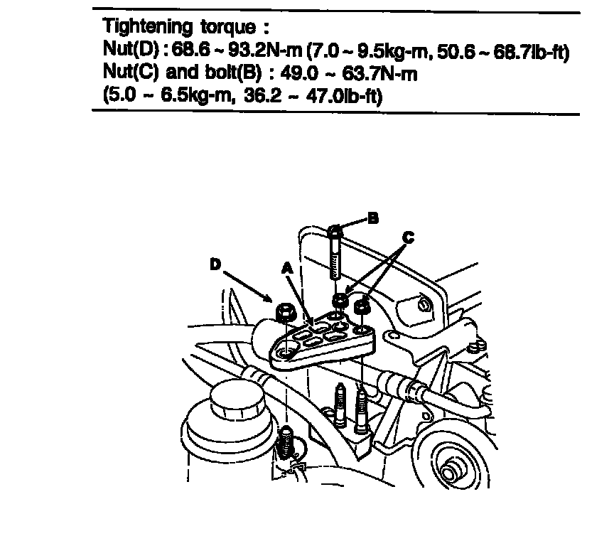 Nut(D): 68.6 - 93.2 Nm (7.0 - 9.5 kg-m, 50.6 - 68.7 ft. lbs.)