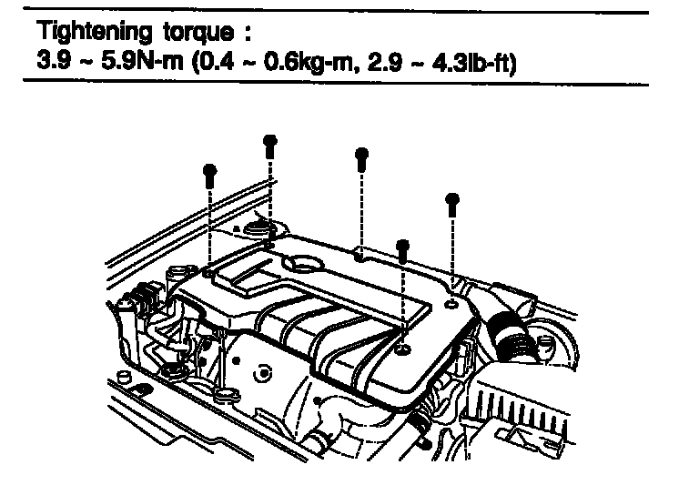 Tightening torque: 3.9 - 5.9 Nm (0.4 - 0.6 kg-m, 2.9 - 4.3 ft. lbs.)