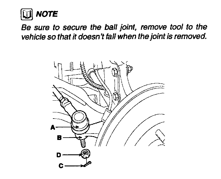 NOTE: Be sure to secure the ball joint, remove tool to the vehicle so that it doesn't fan when the joint is removed.