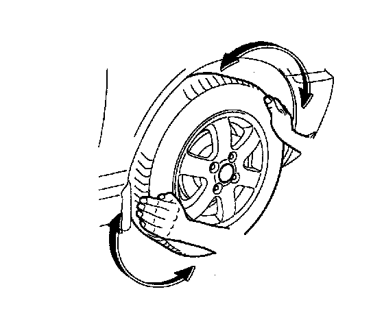 2. Grip each front tire at the top and bottom and move the wheel inward and outward while lifting the weight of the tire off the front wheel bearings.