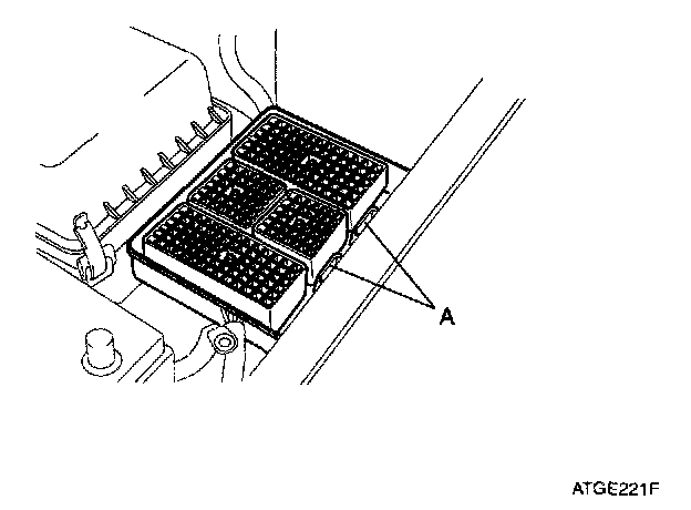 2. Remove the positive (+) battery terminal (A) and alternate L terminal (B).