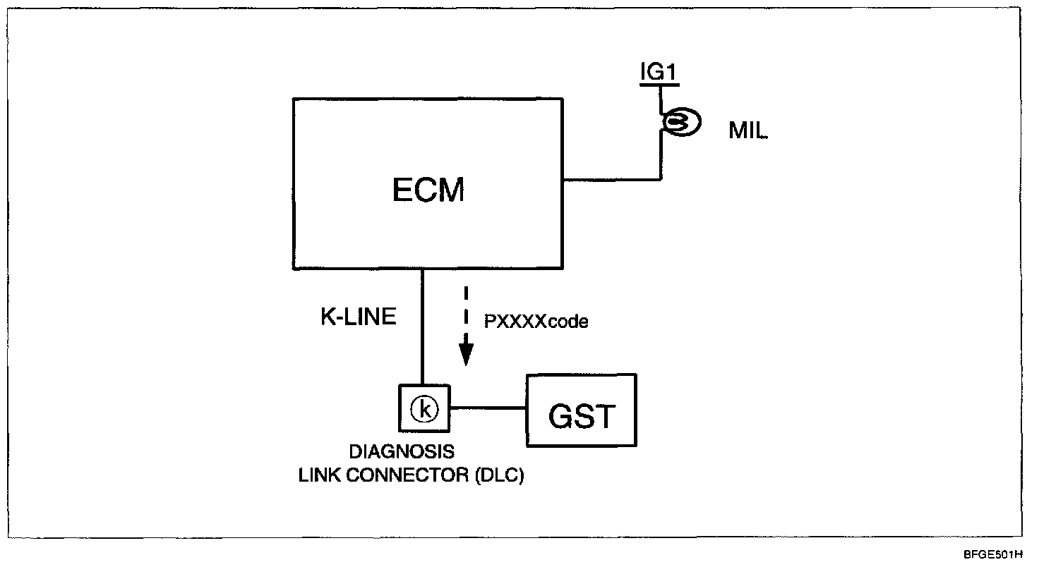 When the ECM detects a malfunction related emission during the first driving cycle, the DTC and engine data are stored in the freeze frame memory. The MIL is illuminated only when the ECM detects the same malfunction related the DTC in two consecutive driving cycles.