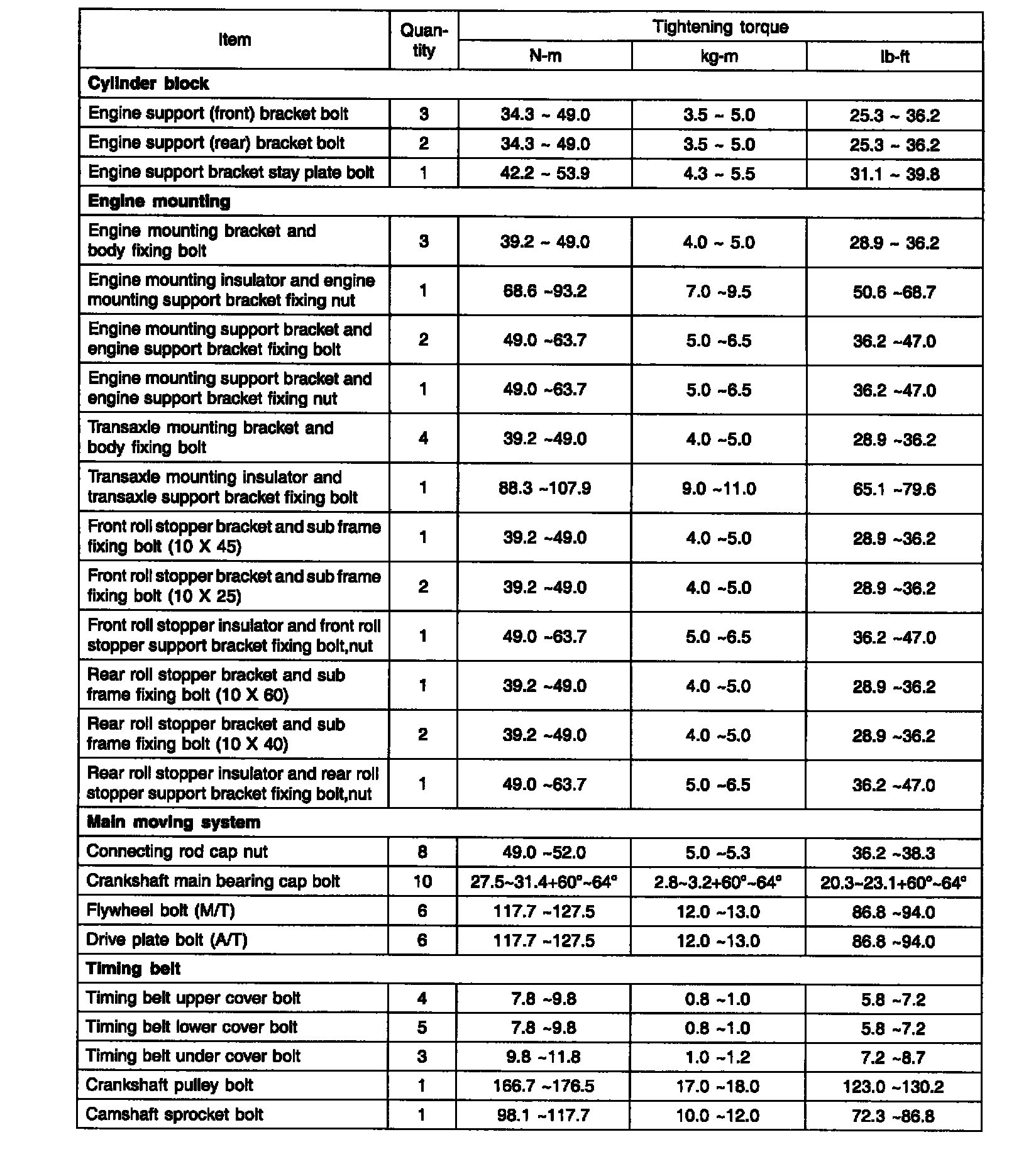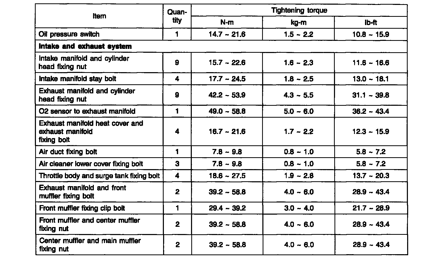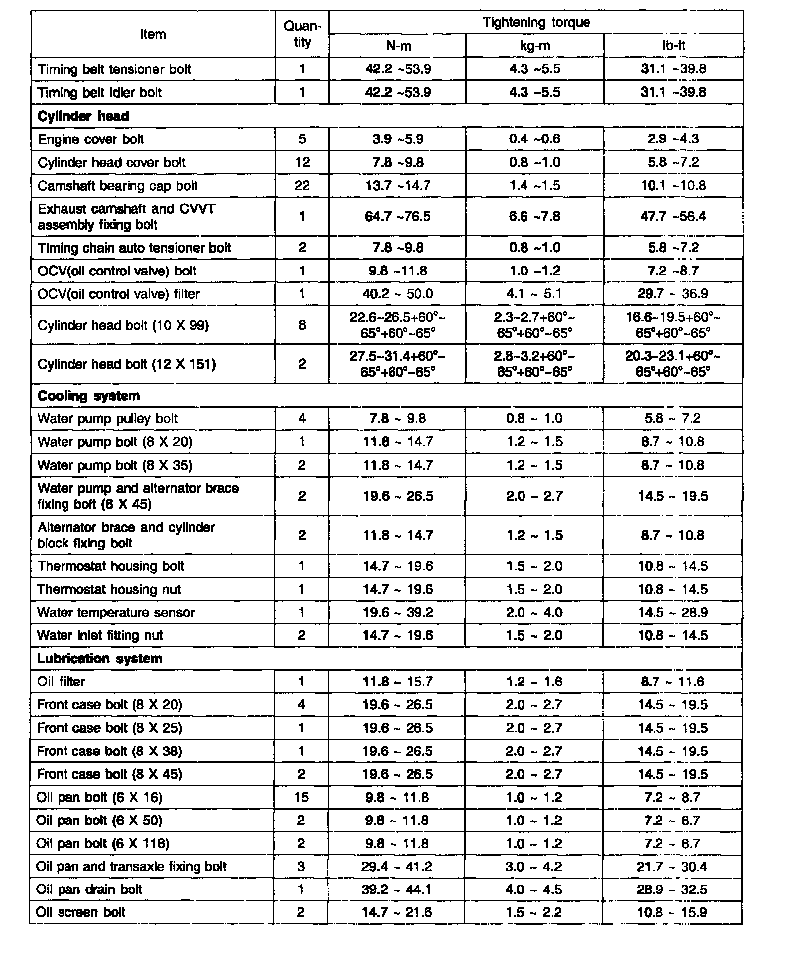 Torque Specifications