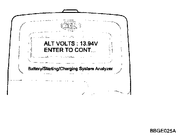 2. If ENTER button is pressed, the tester displays the actual voltage of alternator. Press ENTER to test the charging system.