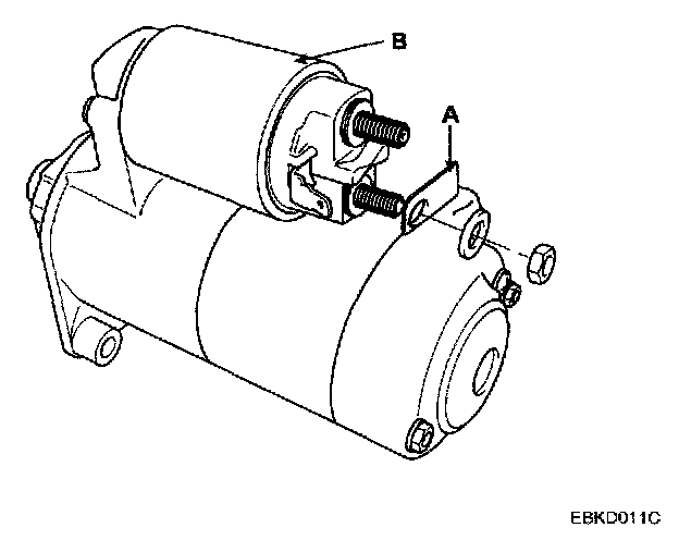DISASSEMBLY1. Disconnect the M-terminal (A) on the magnet switch assembly (B).