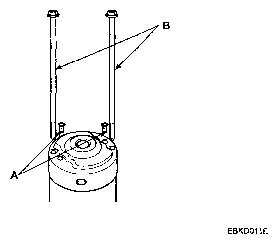 4. Remove the rear bracket (A) and brush holder assembly (B).