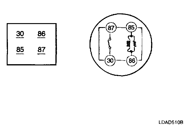 4. Apply 12V to terminal 85 and ground to terminal 86. Check for continuity between terminals 30 and 87.