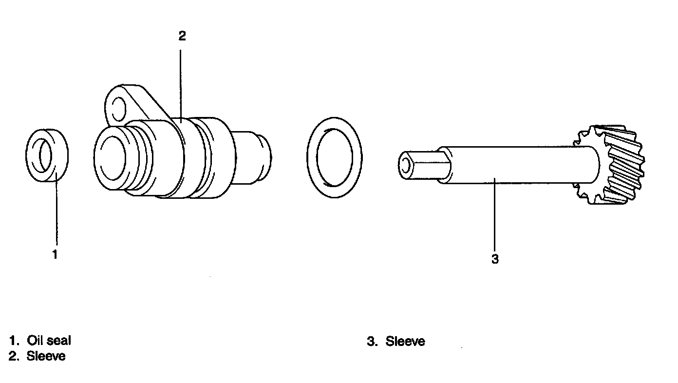 Apply gear oil sparingly to the speedometer driven gear shaft and insert the shaft.