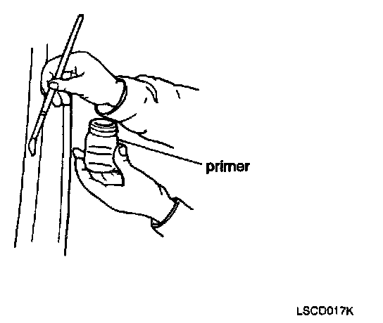 4. Prime an area approximately 20 mm(3/4 inch) wide around the complete perimeter of the glass.