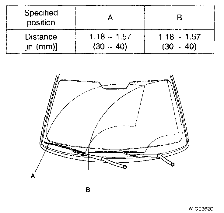 1. Install the wiper arm and blade to the specified position.