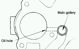 NOTE: Make sure that the bearing oil hole is aligned with the oil hole of cylinder block.