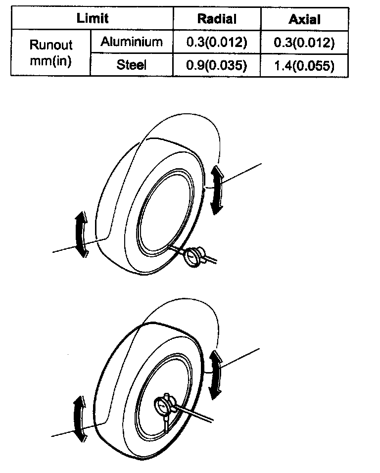 3. Replace the wheel if the wheel runout exceeds the limit.
