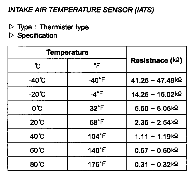 Air Temperature Sensor ( Ambient / Intake ): Specifications