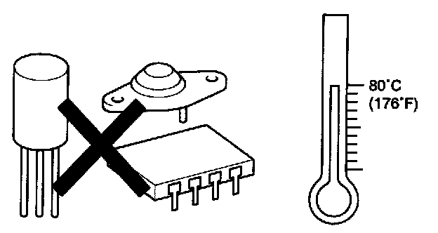6. The electronic parts used in the computer, relays, etc. are readily damaged by heat. If there is a need for service operations that may cause the temperature to exceed 80 degrees C (176 degrees F), remove the electronic parts before hand.