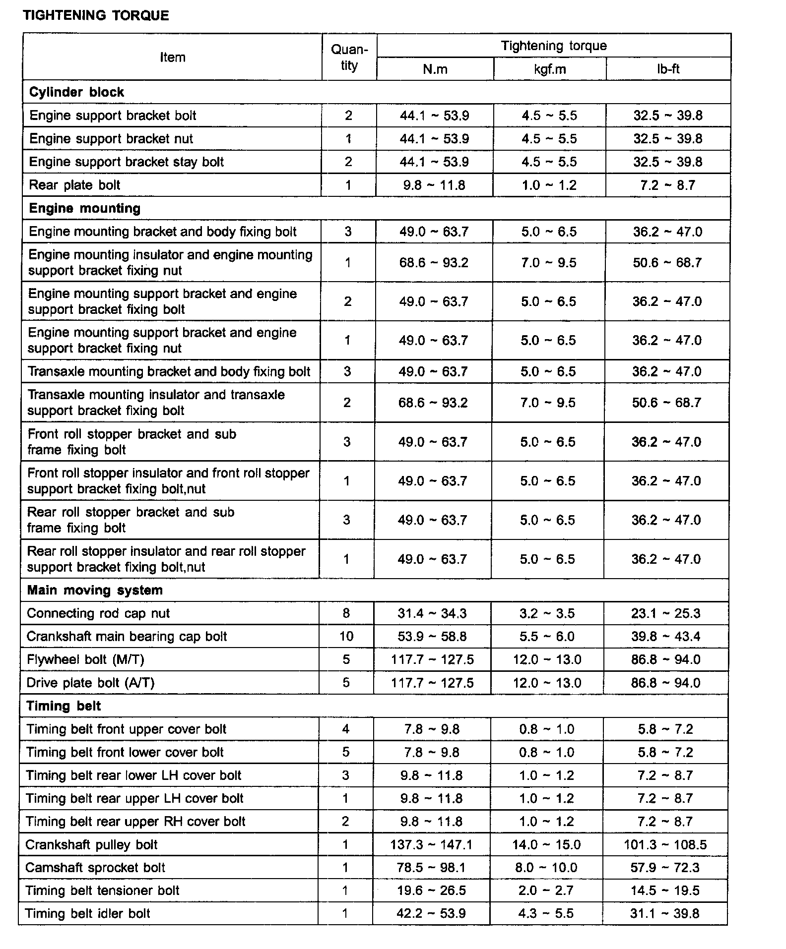 Torque Specifications