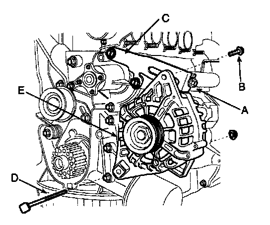 3. Remove the generator drive belt (A), after loosening the adjusting bolt and mounting bolt. (Refer to step 9)