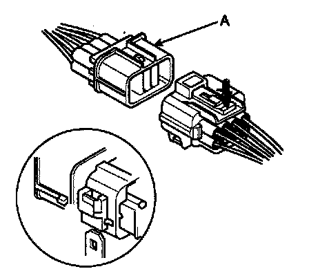 5. Some mounted connectors cannot be disconnected unless you first release the lock and remove the connector from its mount bracket (A).