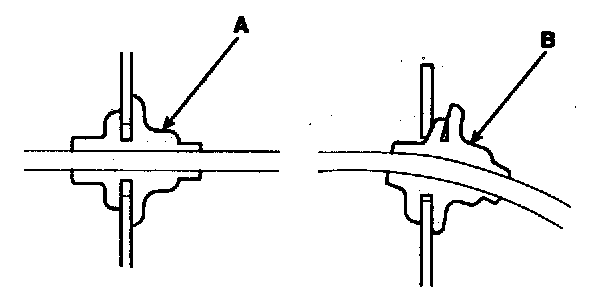 6. Seat grommets in their grooves properly (A). Do not leave grommets distorted (B).
