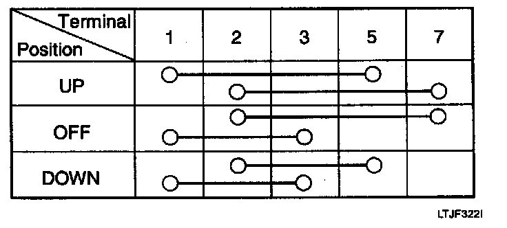 4. Check for continuity between the terminals in each switch position according to the table. If the continuity condition is not normal, replace the switch.