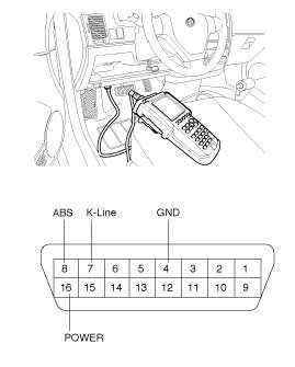 2. Connect the Hi-scan (pro) to the 16P data link connector located behind the driver's side kick panel.