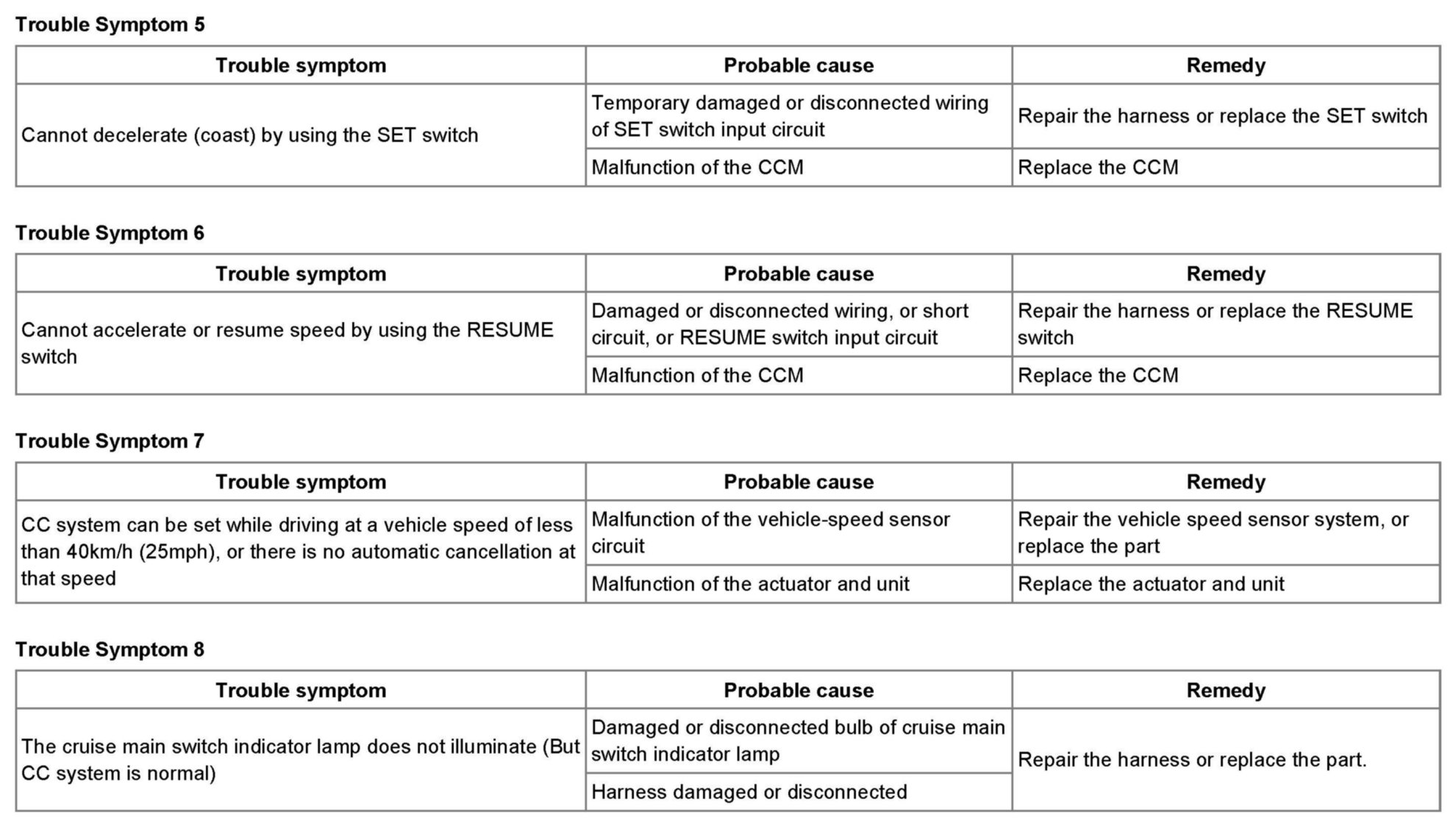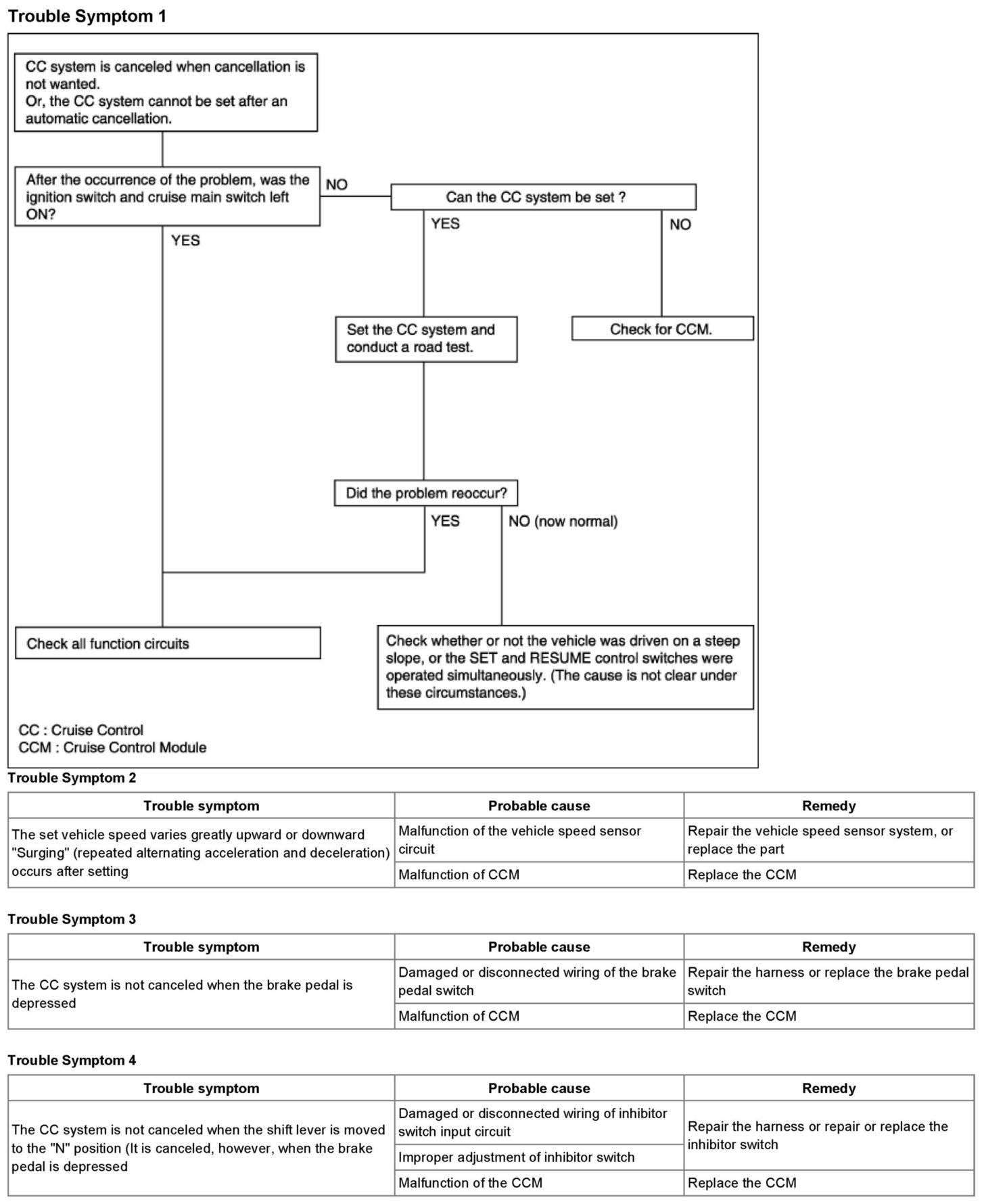 CRUISE CONTROL SYSTEMPRE-TROUBLESHOOTING