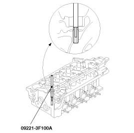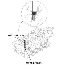 3. Using the SST (09221-3F100 A/B), press-fit the valve guide. The valve guide must be press-fitted from the upper side of the cylinder head. Keep in mind that the intake and exhaust valve guides are different in length.