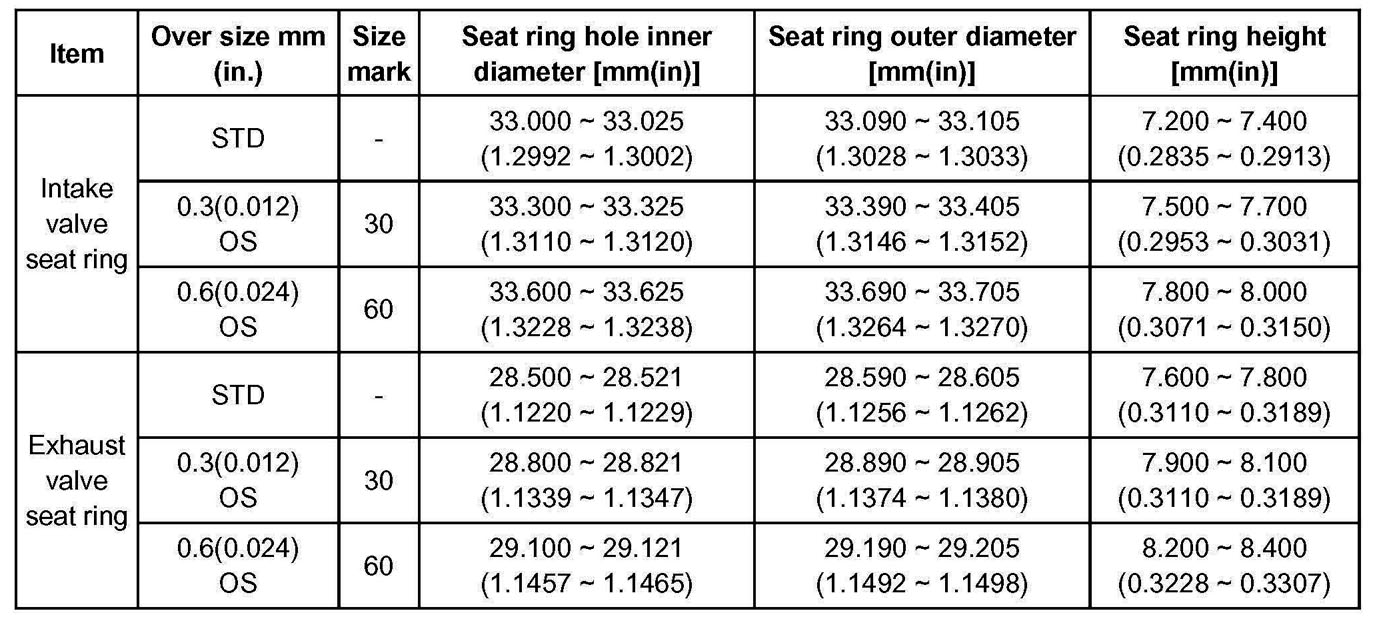 3. Heat the cylinder head to about 250°C (480°F) and press-fit an oversize seat ring for the cylinder head hole size.