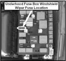 Install a 20 amp. windshield wiper fuse in the underhood fuse box, as shown if the windshield wiper fuse blows in 2004 / 2005 Spectra LD vehicles built before 1/11/05 and no signs of a short circuit are evident.