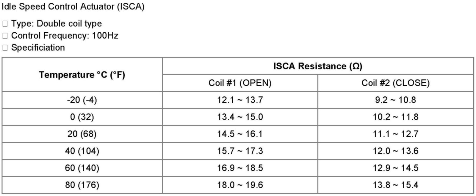 Idle Speed/Throttle Actuator - Electronic: Specifications