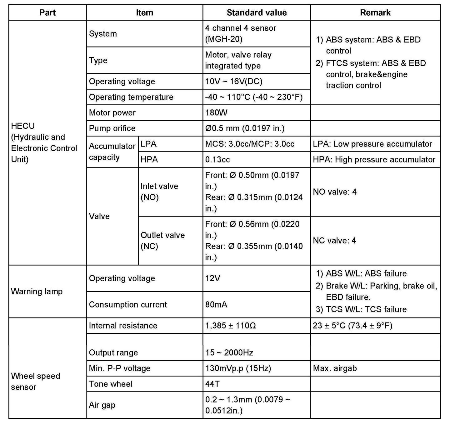 Specification (ABS & TCS)