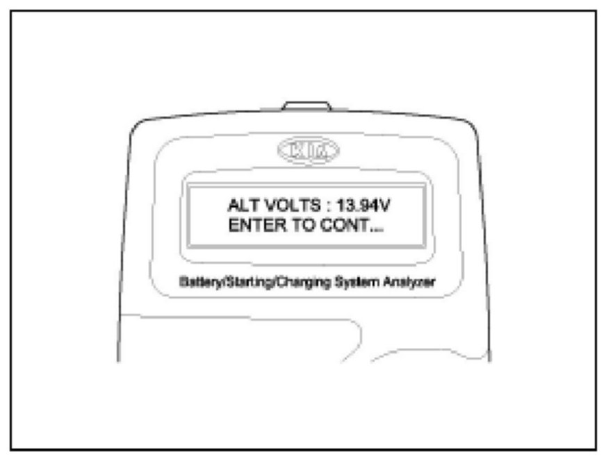 2. If ENTER button is pressed, the tester displays the actual voltage of alternator. Press ENTER to test the charging system.