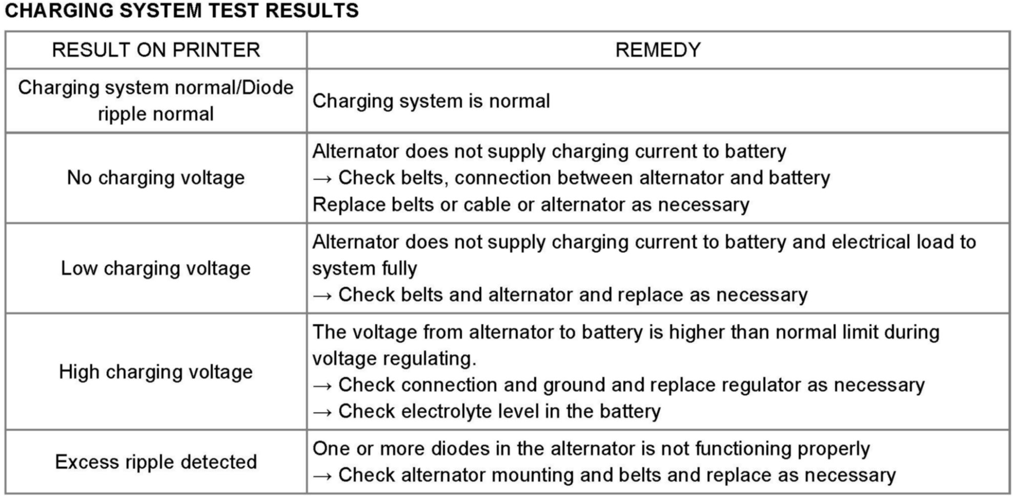 CHARGING SYSTEM TEST RESULTS