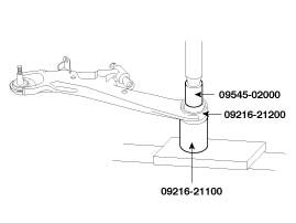 4. Install the new bushing on the lower arm using the Special Tools (09216 - 21100, 09624 - 34000).