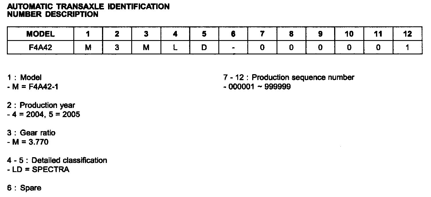 Automatic Transaxle Identification Number Location: