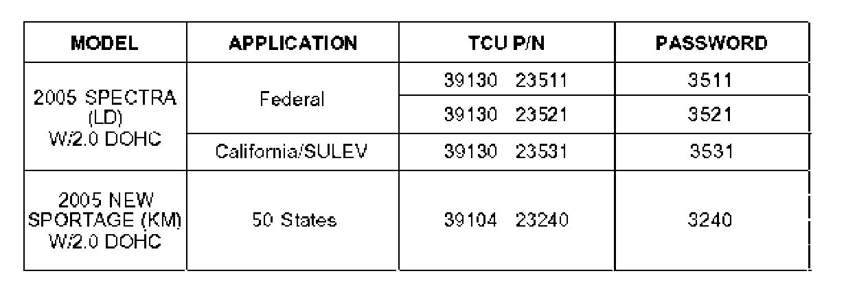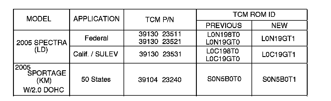 2005MY Spectra and Sportage automatic transaxle equipped vehicles with 2.0L engines.