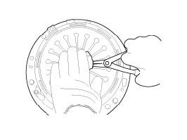 5. If the clutch cover is attached to the flywheel, remove the release bearing using snap-ring pliers.