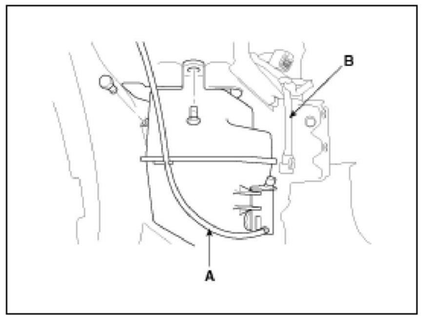 3. Remove the washer hose (A) and the washer motor connector (B).