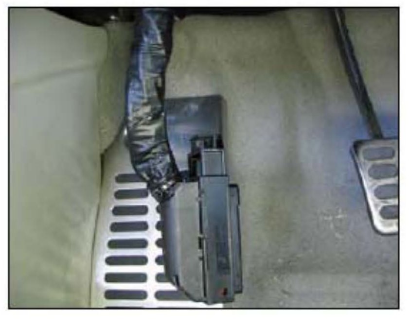 17. Cut the small tie strap and remove the tape from the harness above the PCM connector down and away from the harness. Don't pull up on the cover or the tabs will break.