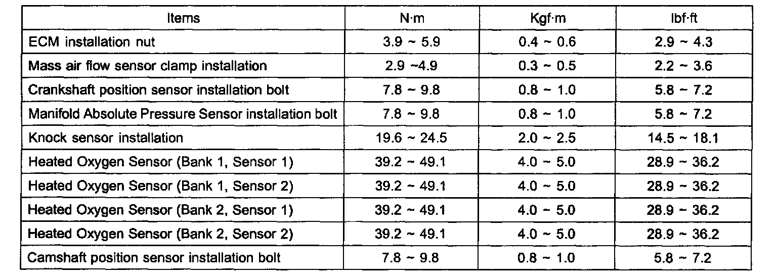 Tightening Torques - Engine Control System: