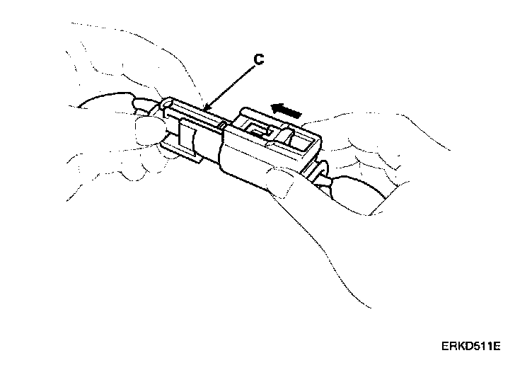 Hold both connector halves and press firmly until the projection (C) of the sleeve-side connector clicks to lock.