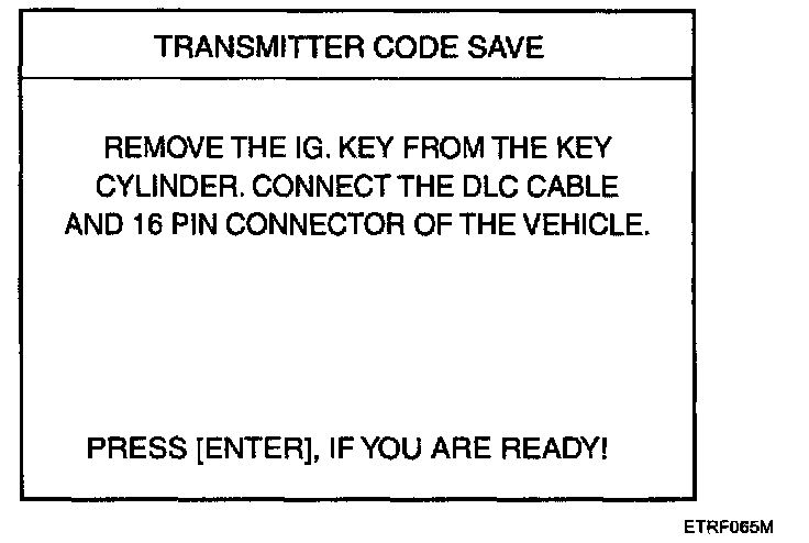 4. After removing the ignition key from key cylinder, push "ENTER" key to proceed to the next mode for code saving. Follow steps 1 to 4 and then code saving is completed.