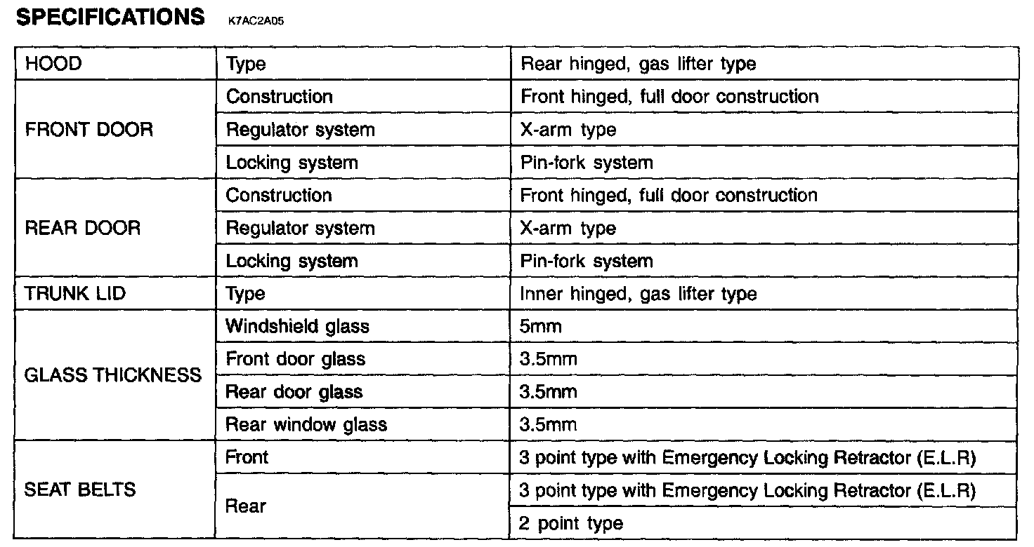 Body and Frame: Specifications