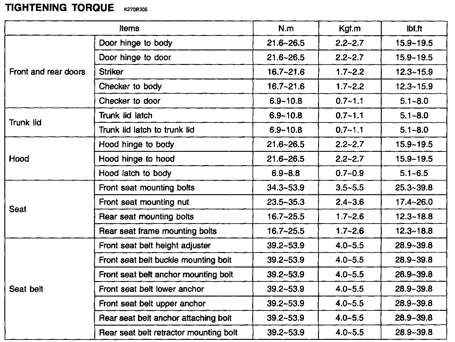 Tightening Torque: