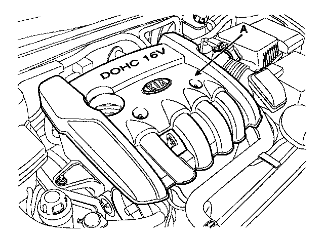 4) The dowel pins on the cylinder block and holes on the timing chain cover should be used as a reference in order to assemble the timing chain cover (A) to be in exact position.