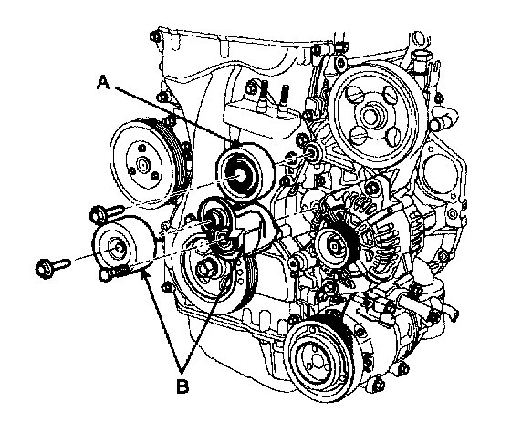 19. Install drive belt tensioner (B) and tensioner pulley.