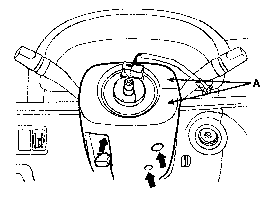 2. Remove the steering column upper and lower shrouds (A) after removing 3 screws.